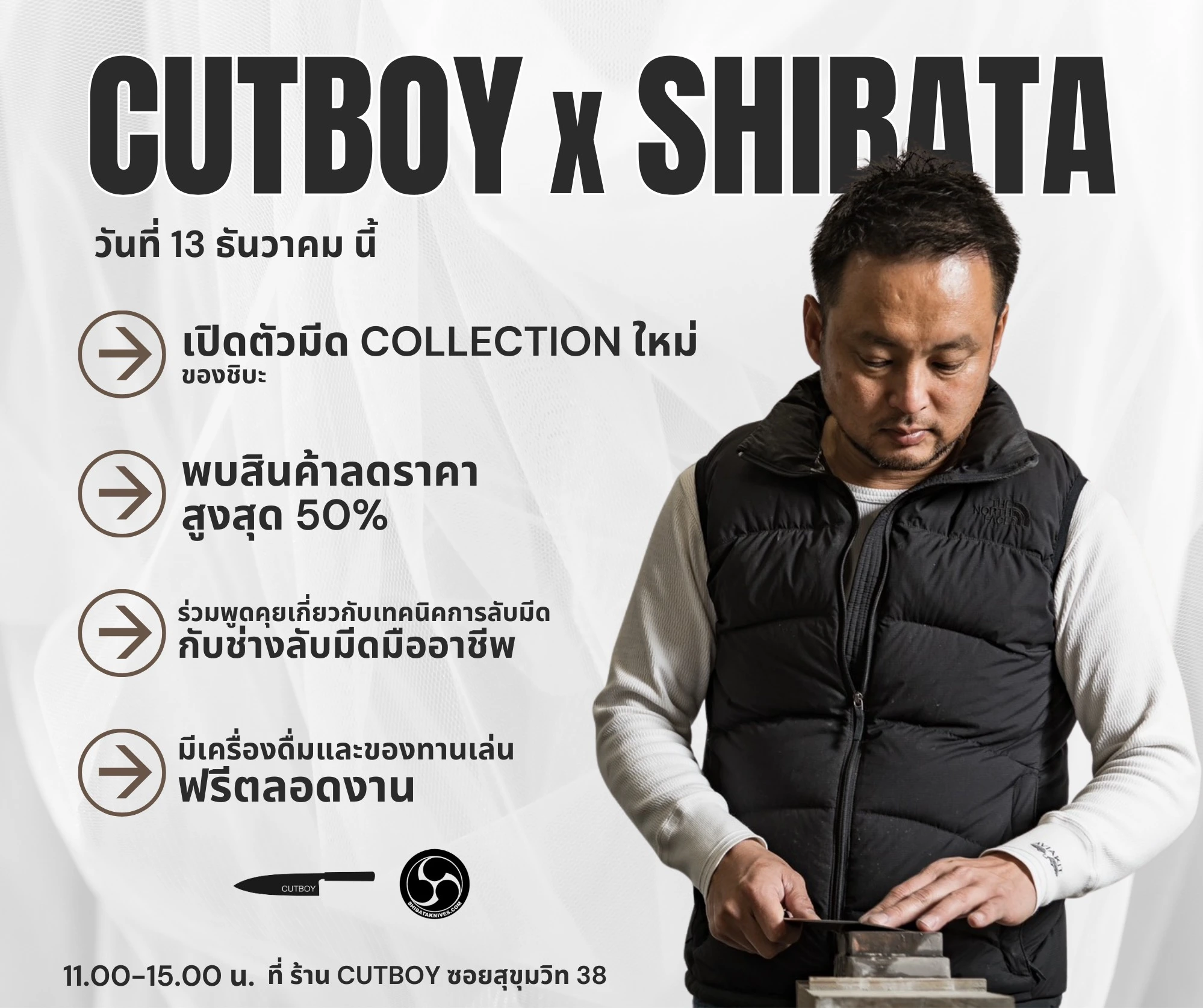 วันเสาร์ที่ 13 ธันวาคมนี้ พบกันนะครับ ช่างมีดชาวญี่ปุ่น Takayuki Shibata มาที่ร้าน CUTBOY สุขุมวิท 38 ครับ